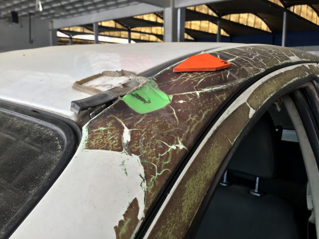 Toldo | Reparación de Hojalatería y Pintura | Toldo perforado y con abolladura |