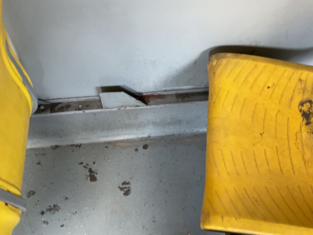 Filas Asientos Pasajeros | Reparación | Una fila de asientos de-soldada, otra fila suelta de su punto de anclaje, asientos de diferente diseño y marca | ||