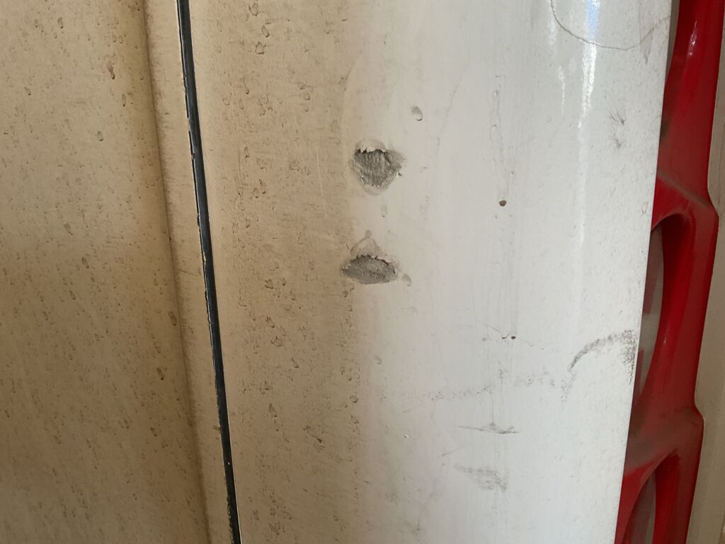 Costado/Salpicadera | Reparación de Hojalatería y Pintura | Presenta abolladuras, despostilladuras, perforaciones y reparación de pintura con mal acabado | ||