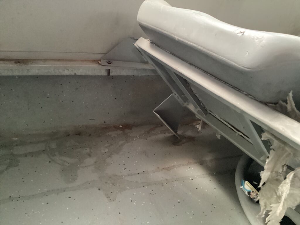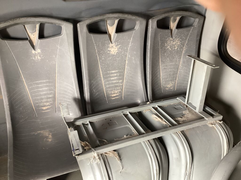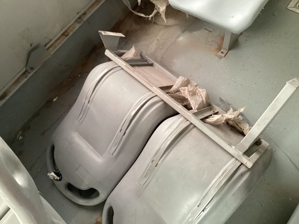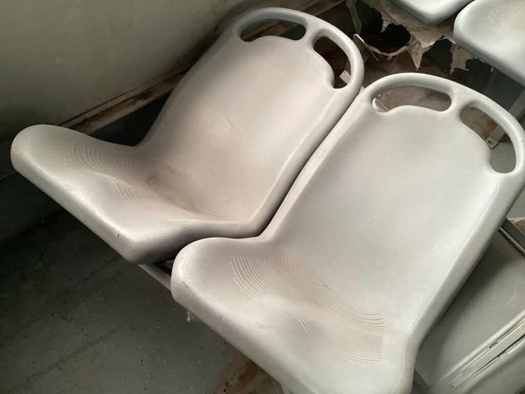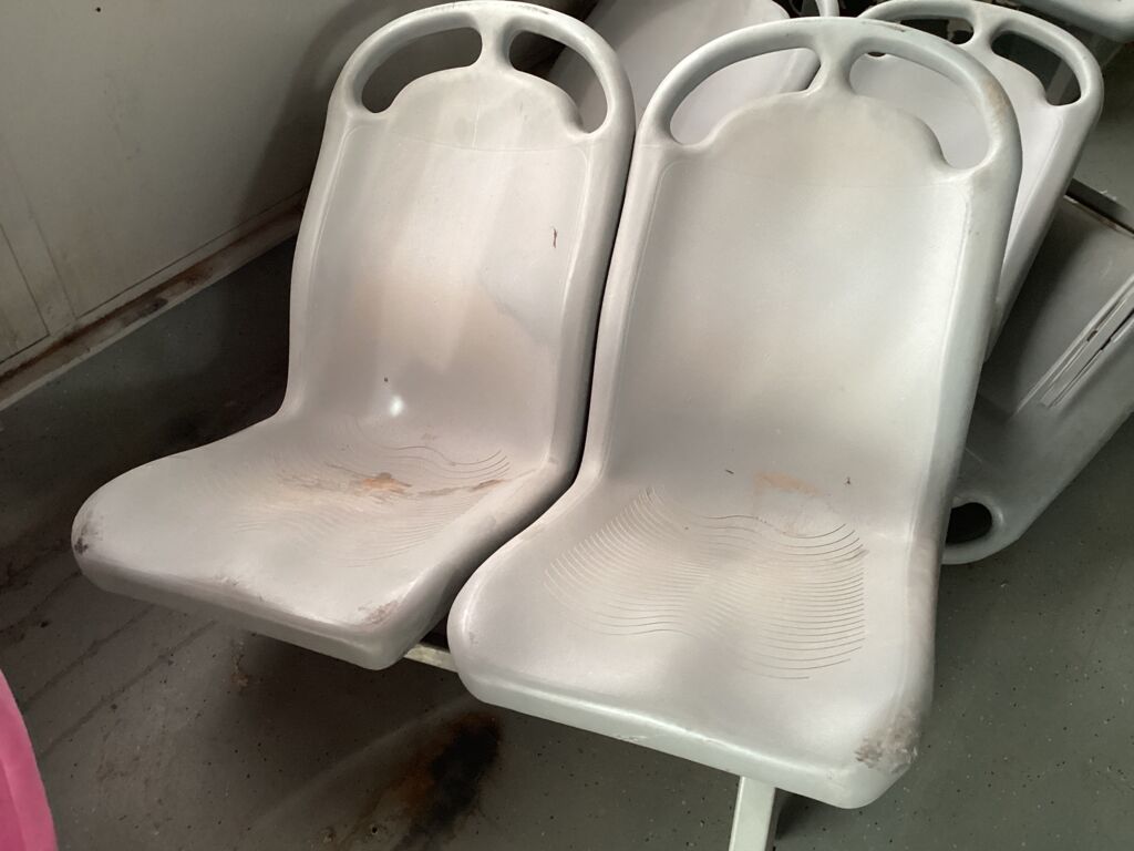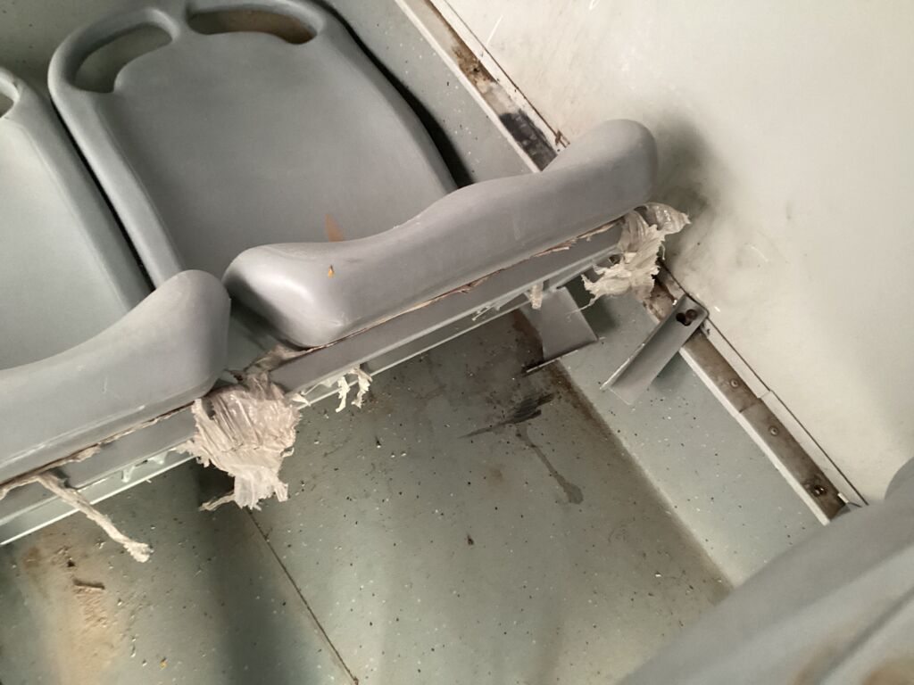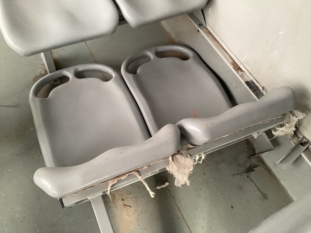 Filas Asientos Pasajeros | Reparación | Presenta 5 filas de asientos rotas de los postes de fijación, requieren reparación, el resto de asientos requieren ser fijados. | ||