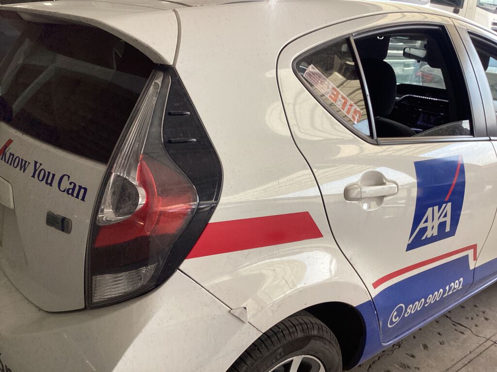 | Puerta Trasera | Reparación de Hojalatería y Pintura | Presenta vinil y abolladura | ||