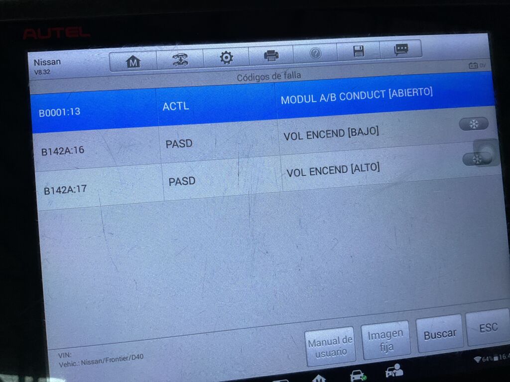 | AirBag | Reparación | Sistema de air bag del lado de piloto sin funcionamiento (código de error Boooq:13) | ||