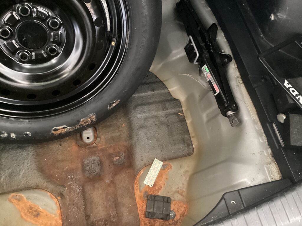 | Tina/depósito de llanta de refacción | Reparación de Hojalatería y Pintura | Presenta oxidación | ||
