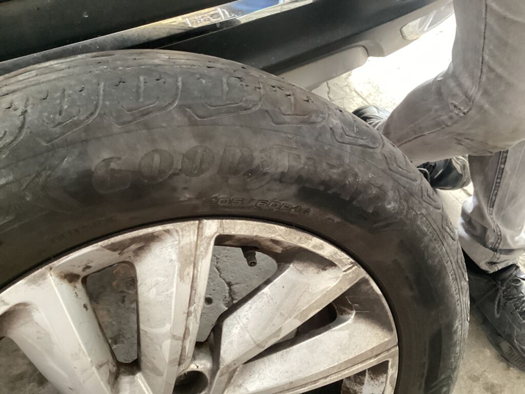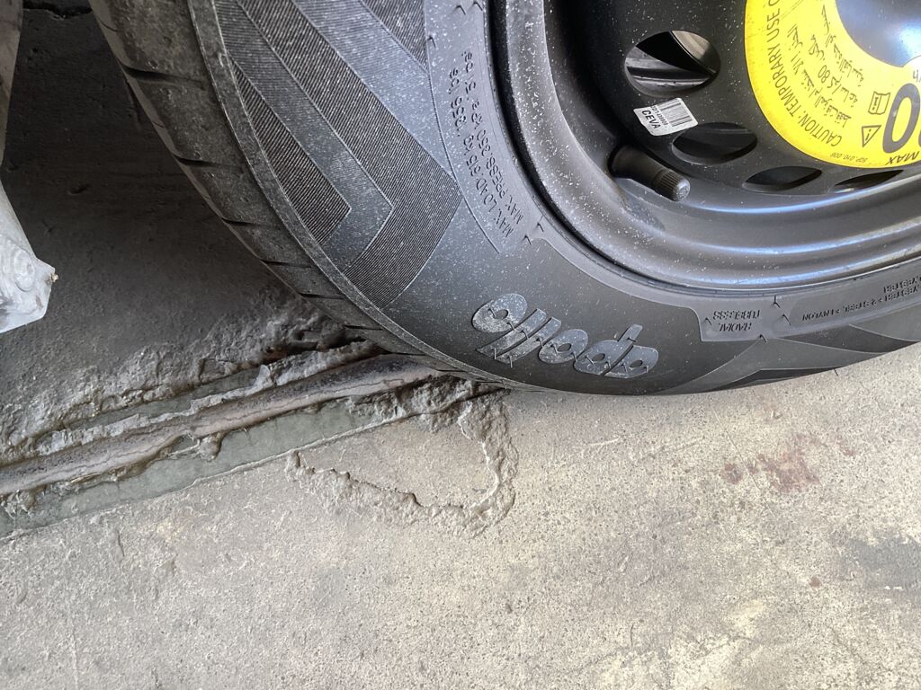 | Llanta Refacción | Cambio de Pieza | Llanta delantera derecha en el lugar de la de refacción, presenta poca vida y se encuentra desinflada |