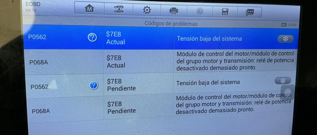 | Motor | Faltante Compra | Tensión baja de batería provoca códigos de falla, se recomienda revisión una vez se haya reemplazado bateria | ||