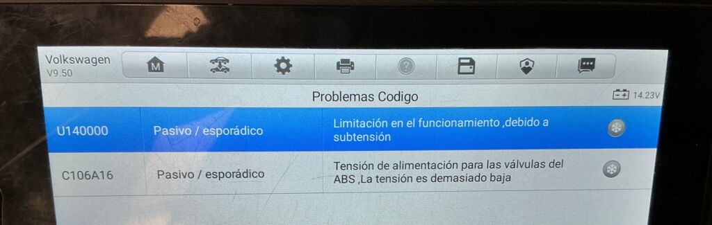 | Frenos | Cambio de Pieza | Tensión baja de batería provoca códigos de falla | ||