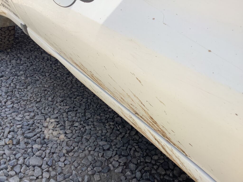 Puerta Delantera | Daño en Hojalatería y Pintura | Adolladura y despostilladura en montante. | ||