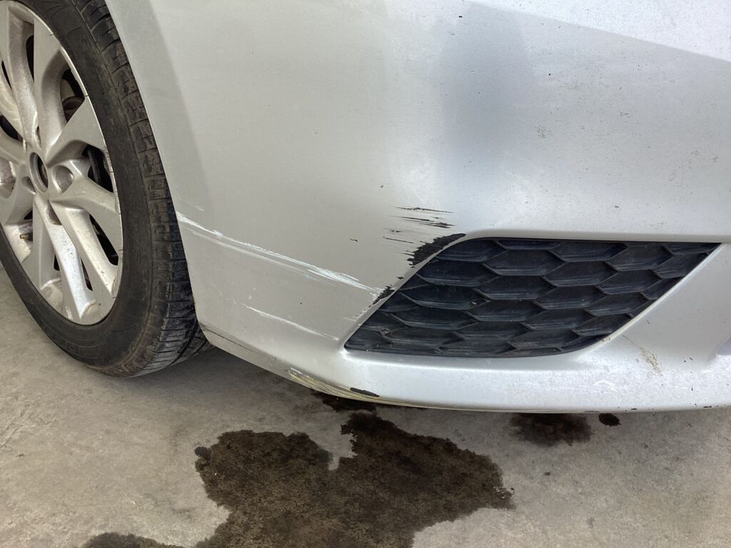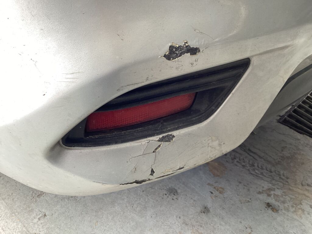 Defensa/Fascia | Cambio de Pieza | Pieza rota, raspada, descuadrada y caída. Soportada por cinchos | ||