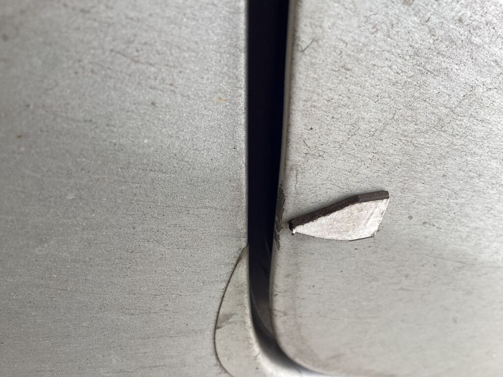 Postes y Marcos | Cambio de Pieza | Marco de puerta trasera descuadrado y poste A con pintura despostillada | ||