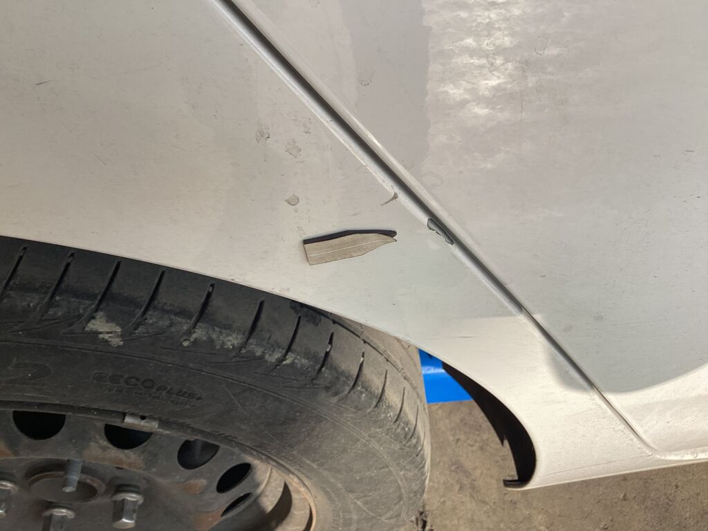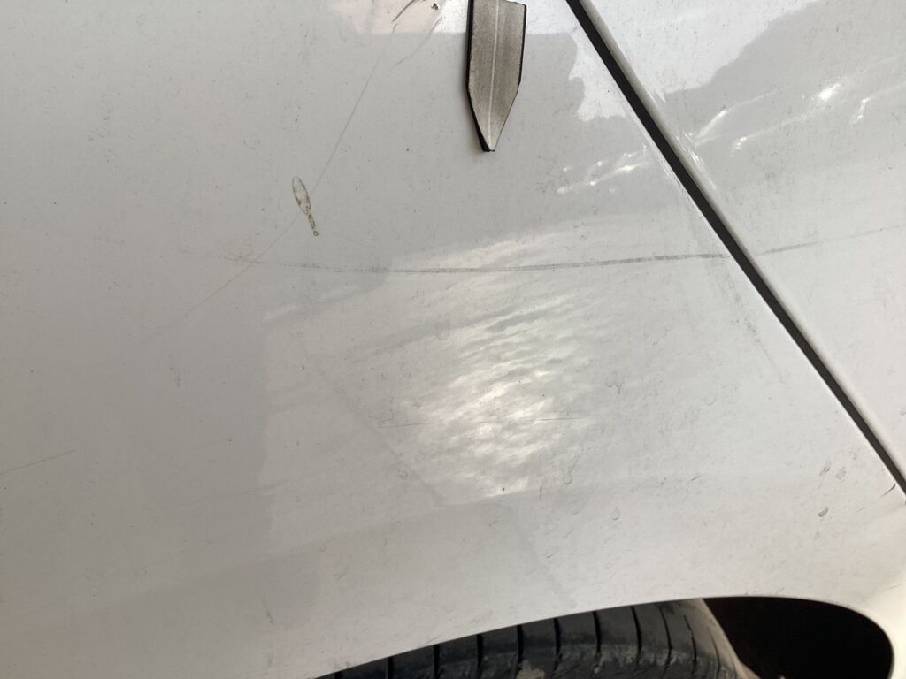 | Salpicadera Delantera | Presenta abolladura y reparación previa con repintado ya que presenta un tono distinto con la puerta | |||