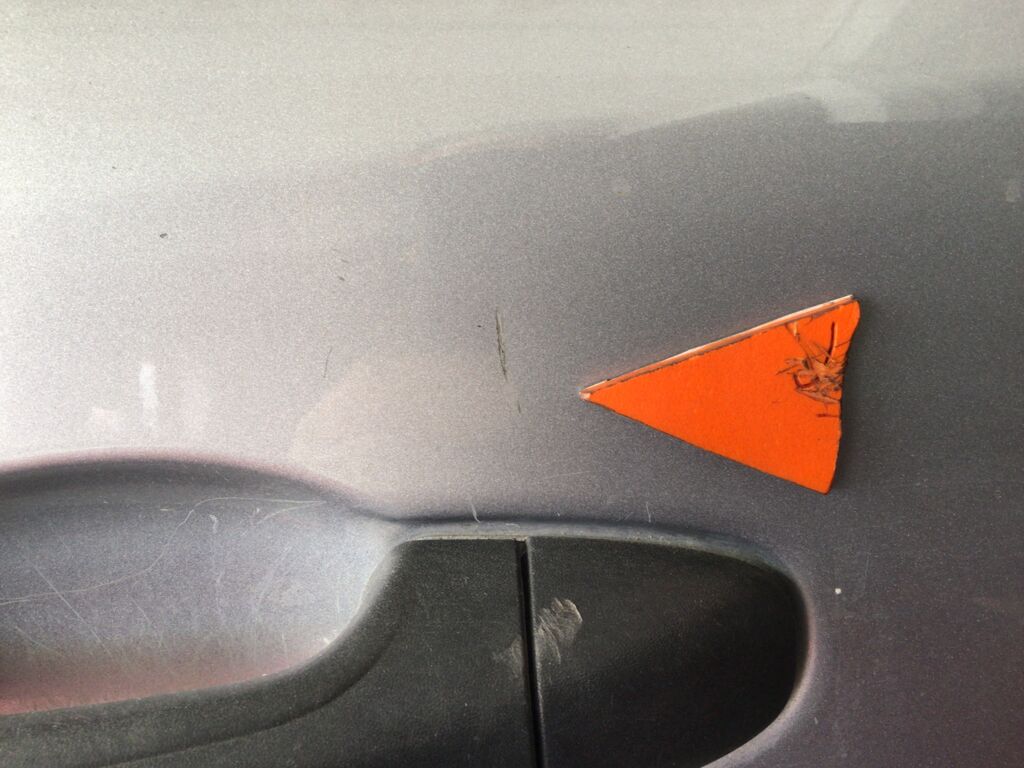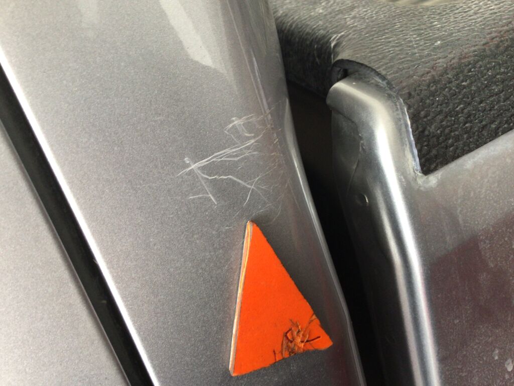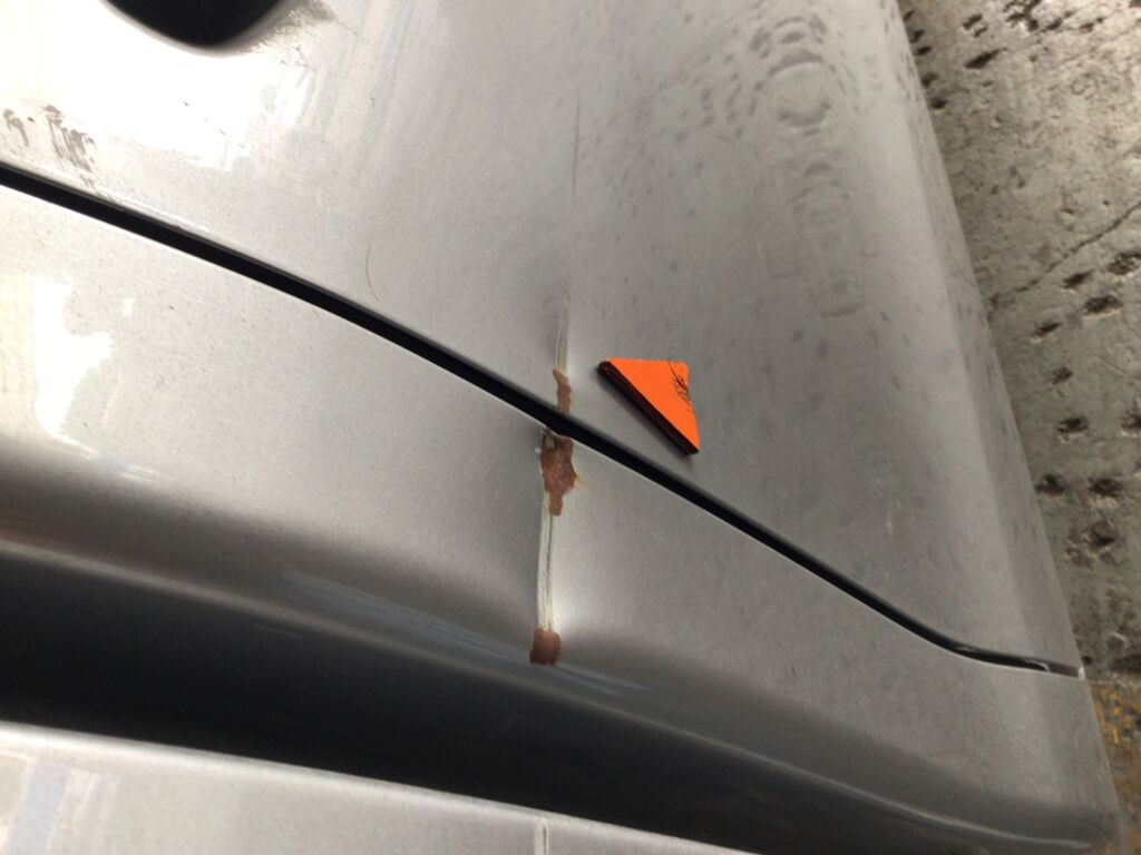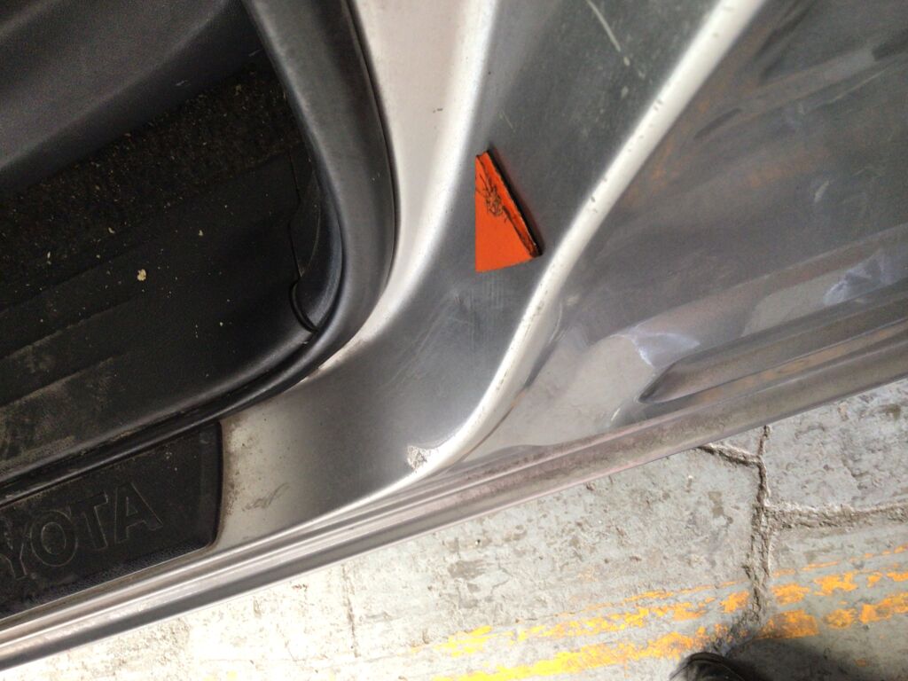 Postes y Marcos | Reparación de Hojalatería y Pintura | Poste presenta rayones y marco de puerta delantera presenta abolladura | ||