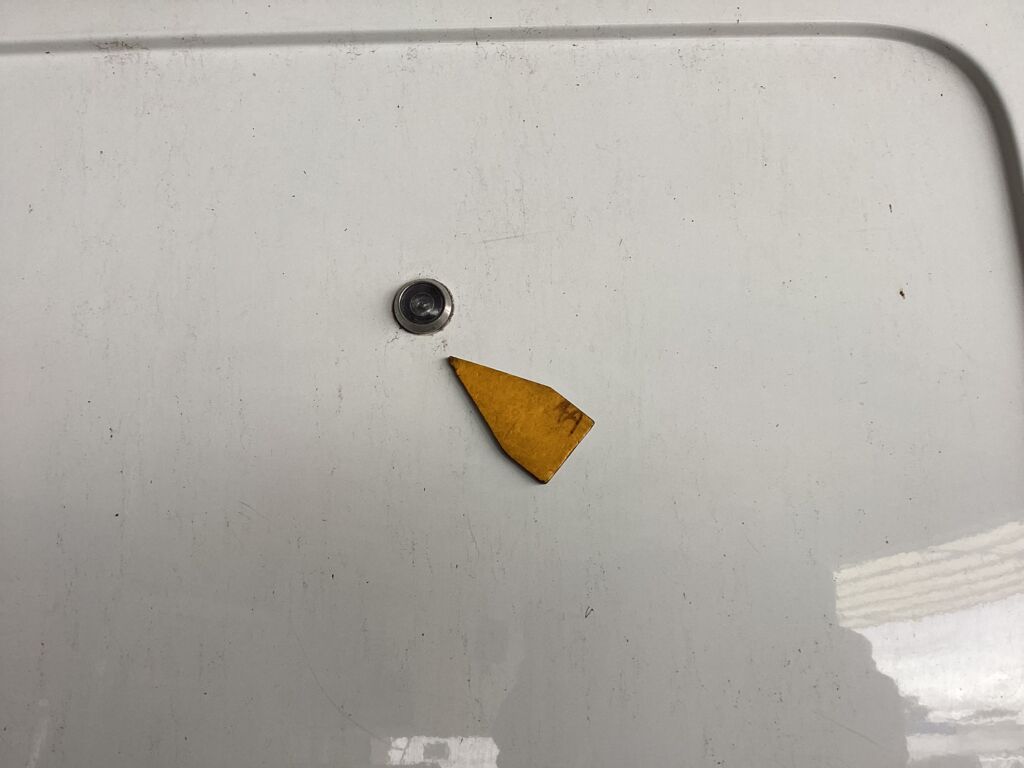 Puerta Trasera | Reparación de Hojalatería y Pintura | Puerta perforada por instalación de mirilla | ||
