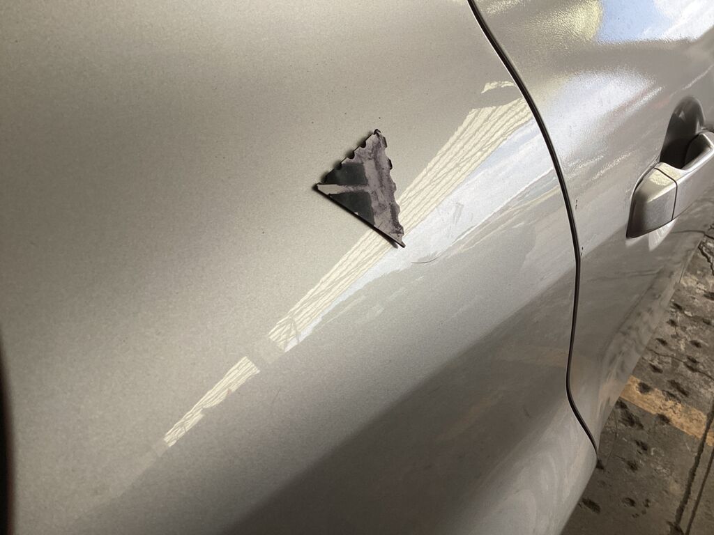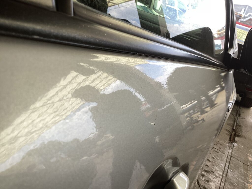 Puerta Delantera | Reparación de Hojalatería y Pintura | Se encuentra repintada con calidad media y presenta abolladura, restos de vinil | ||