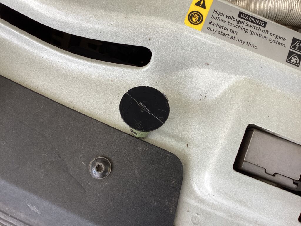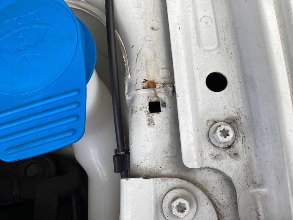 Cofre | Reparación de Pintura | Seguro reposador de Varilla de sostén roto de su seguro. Despostilladuras, rayones. |