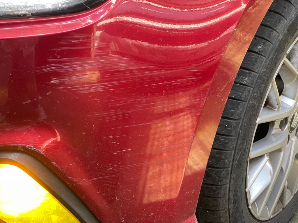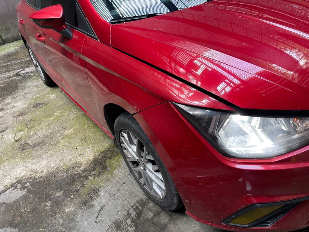 Salpicadera Delantera | Reparación de Hojalatería y Pintura | Reparación mal realizada en impacto previo | ||