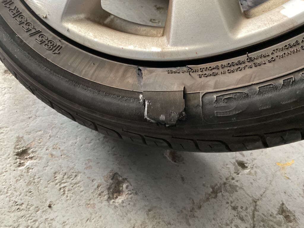 Llanta Delantera Derecha | Cambio de Pieza | Requiere cambio debido a daño en cara del neumático, refacción colocada en su lugar | |