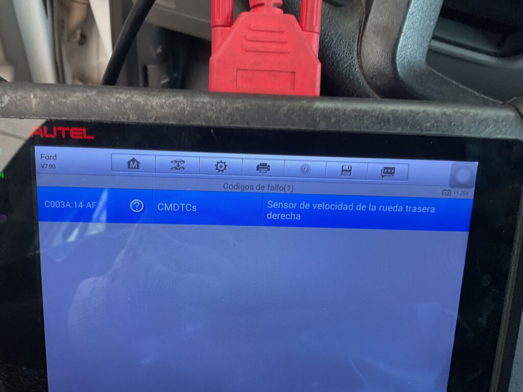 Frenos | Mantenimiento | Falla en Sensor de velocidad de rueda trasera derecha | ||