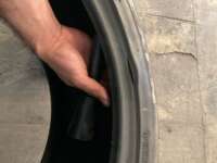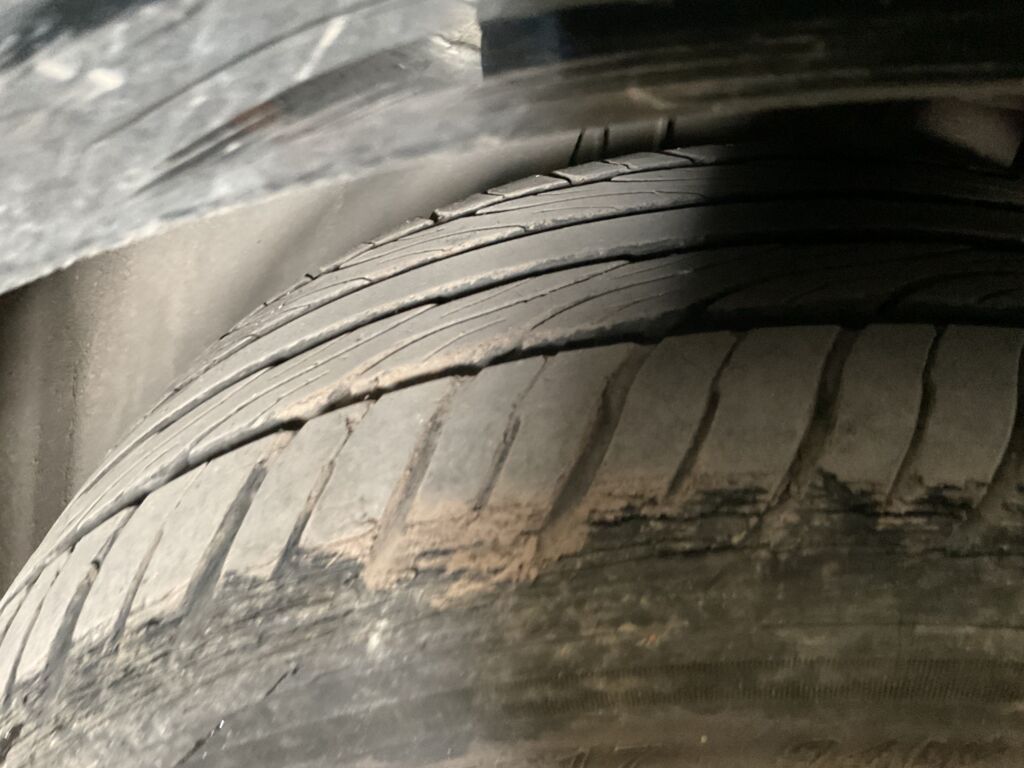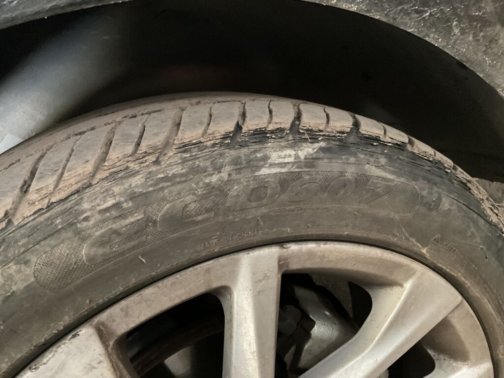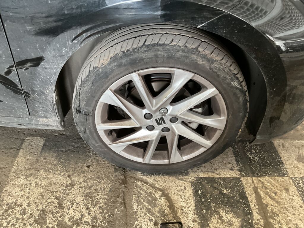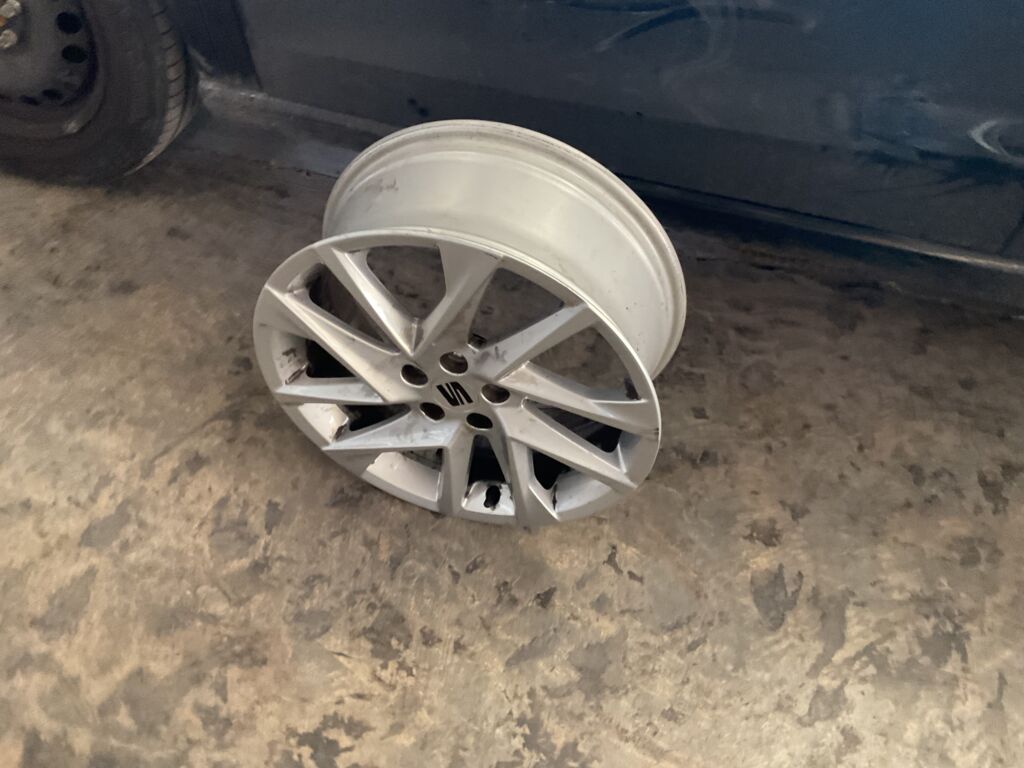 Llanta Delantera Izquierda | Cambio de Pieza | Refacción colocada, rin fuera del neumático, daño en cara del neumático | |