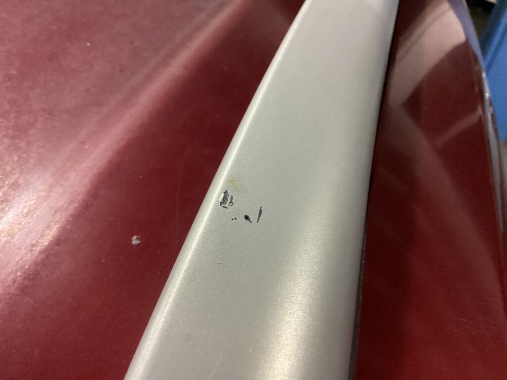 Molduras | Reparación de Hojalatería y Pintura | Moldura plateada parte baja con tallón leve | ||