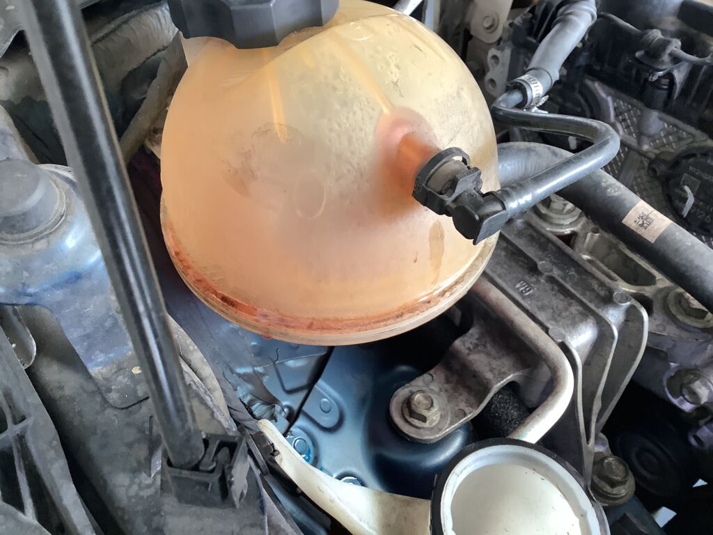 | Anticongelante | Mala reparación previa de manguera del recuperador, conexión con el depósito presenta fuga continua de refrigerante | |||