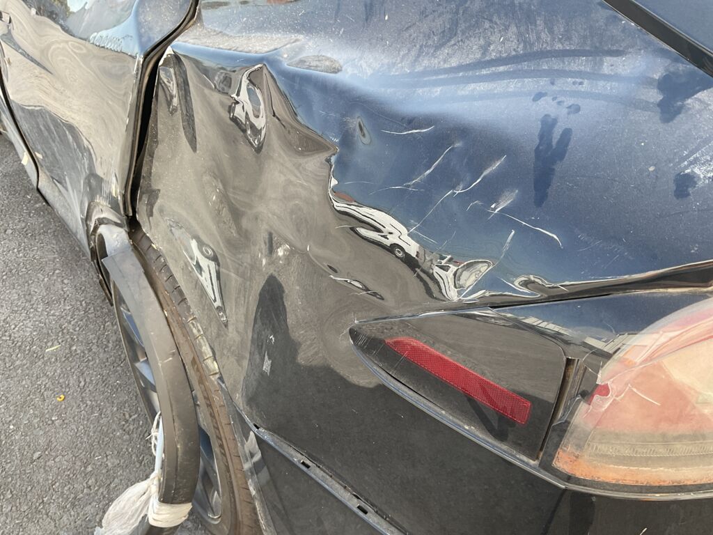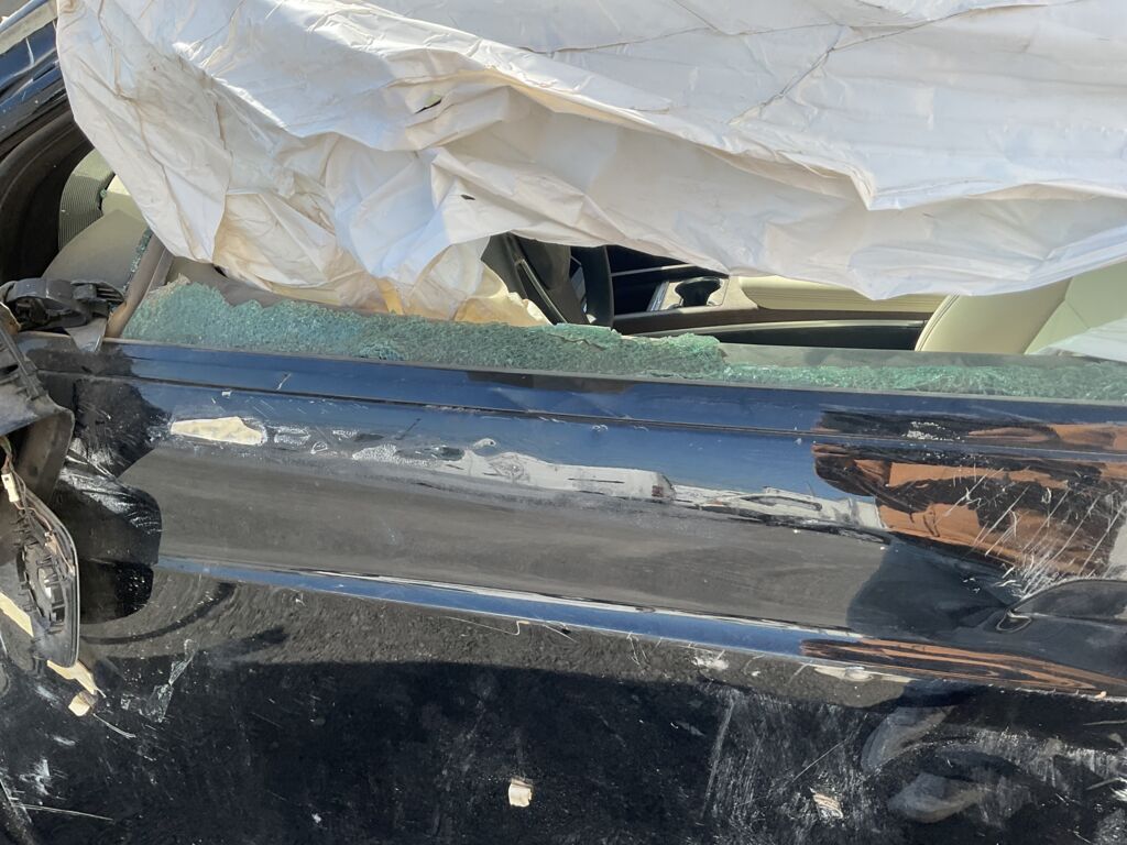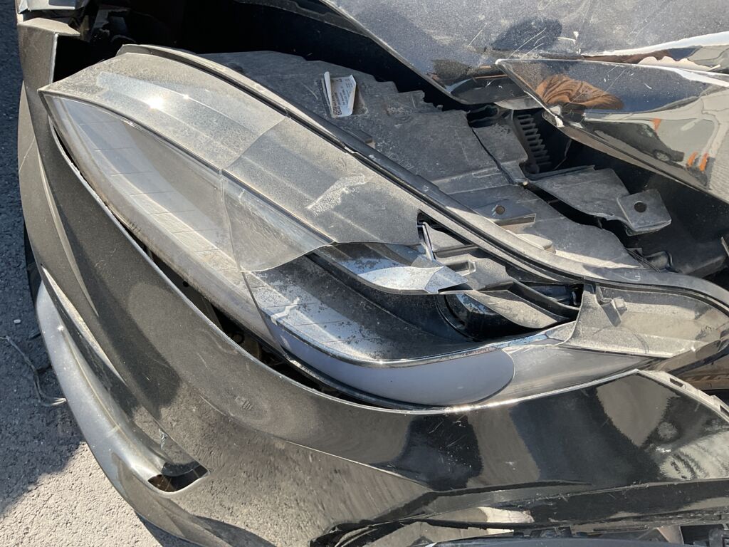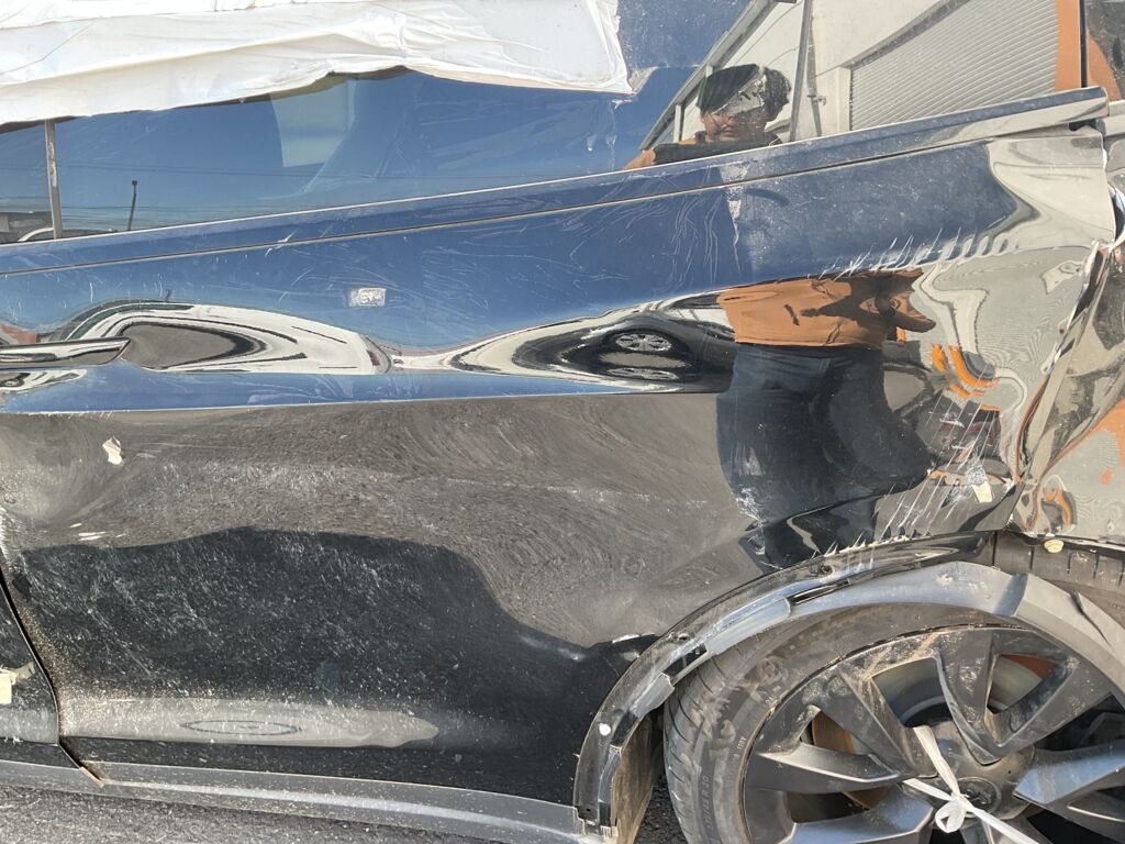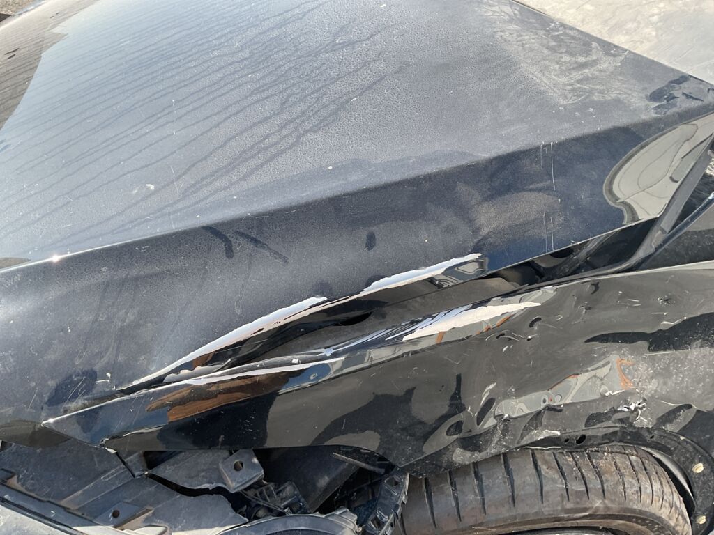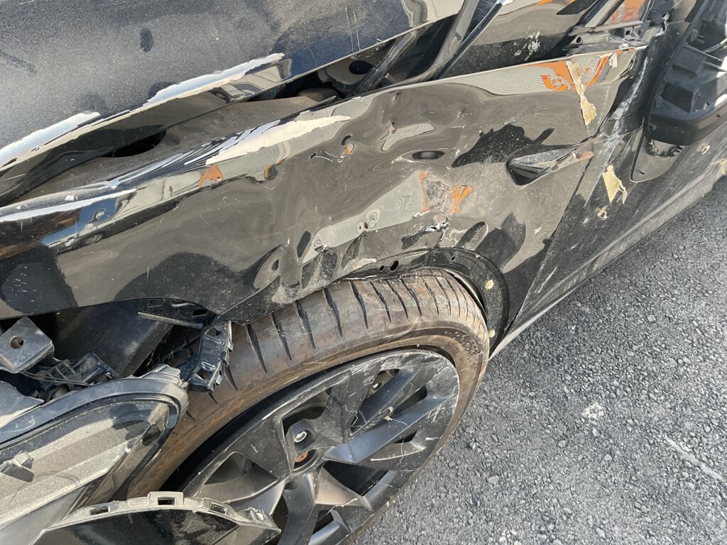 | Salpicadera Delantera | Gran parte abollado y con golpe fuerte que afectó chasis y suspensión, daños en toda la carrocería, piezas faltantes y dañadas | |||