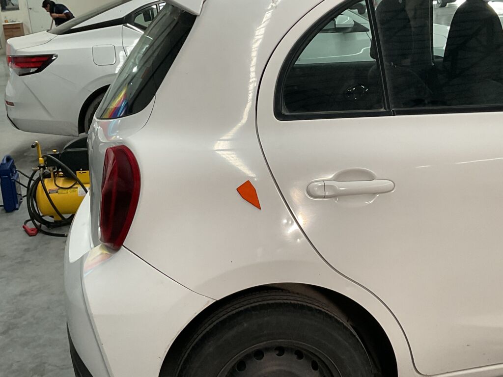 | Postes y Marcos | Reparación de Hojalatería y Pintura | Abolladuras en parte trasera de puerta | ||