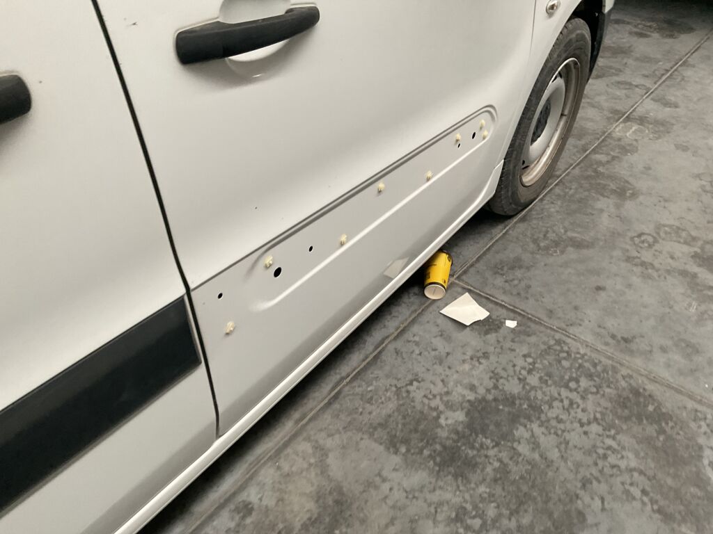 | Puerta Trasera | Reparación de Hojalatería y Pintura | Tallon en parte inferior y pintura desgastada en puerta corrediza | ||