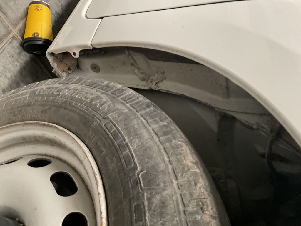 | Salpicadera Delantera | Reparación de Hojalatería y Pintura | Abolladura en parte inferior | ||
