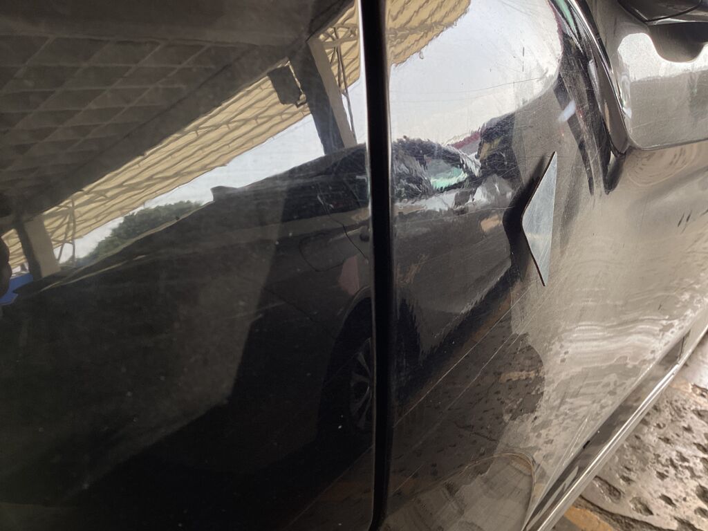 | Puerta Delantera | Reparación de Hojalatería y Pintura | Presenta abolladura y se encuentra reparada con calidad media | ||