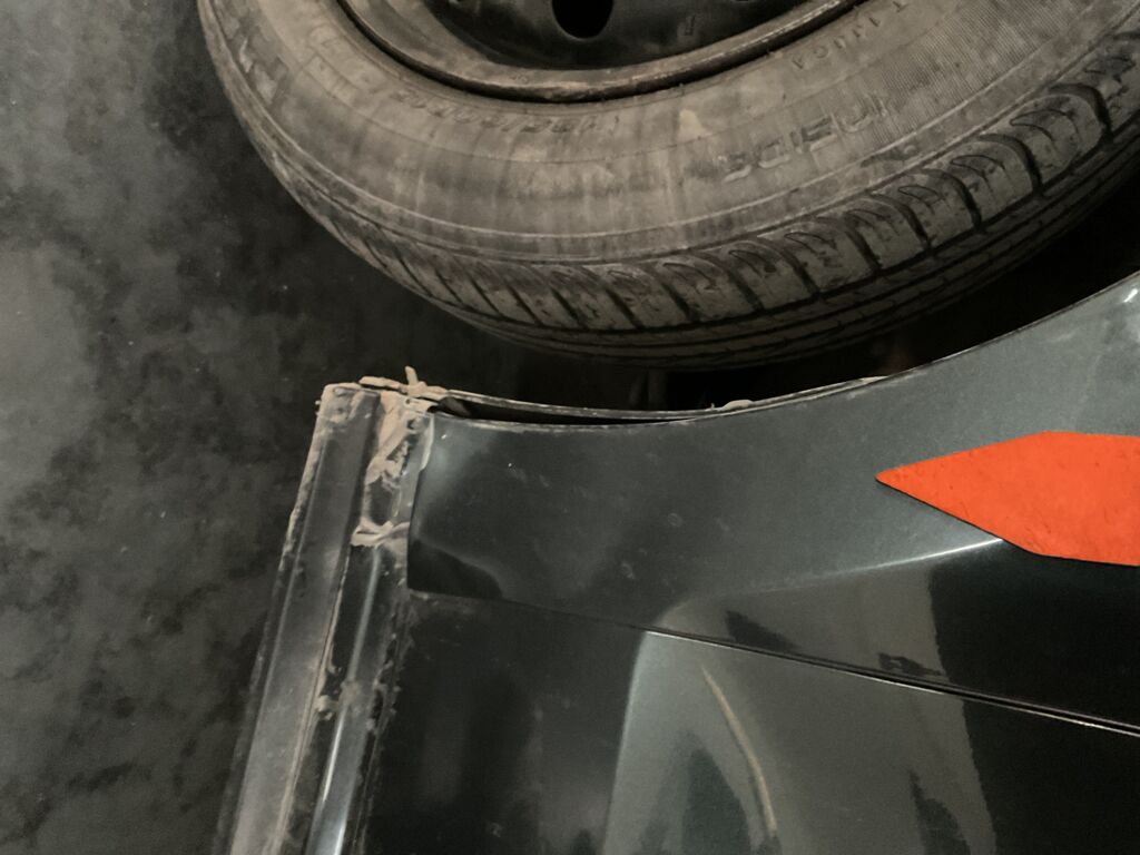 | Postes y Marcos | Reparación de Hojalatería y Pintura | Abolladura en poste de puerta delantera | ||