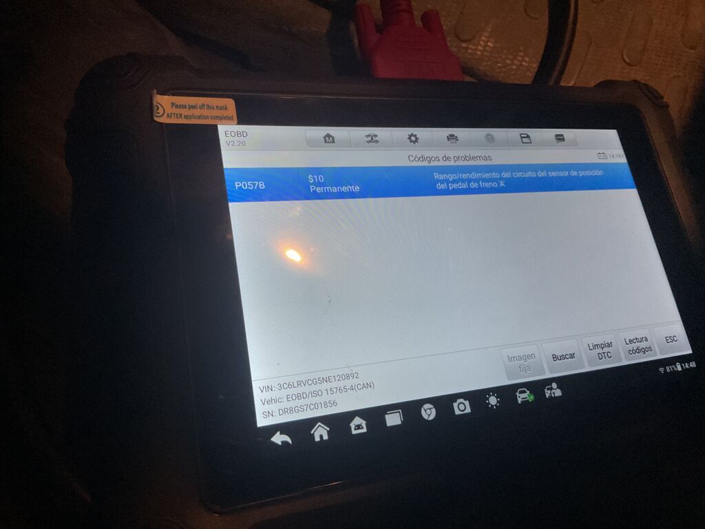 | Frenos | Reparación | Código de error en sensor de posición de pedal de freno (código p057B) se recomienda acudir con especialista. | ||