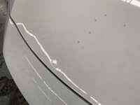 | Cofre | Reparación de Hojalatería y Pintura | Cofre con abolladuras zona inferior |