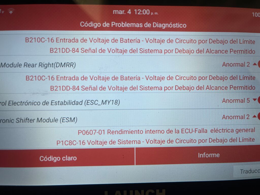 | Motor | Cambio de Pieza | Presenta códigos de pérdida de comunicación por retención baja en batería | ||