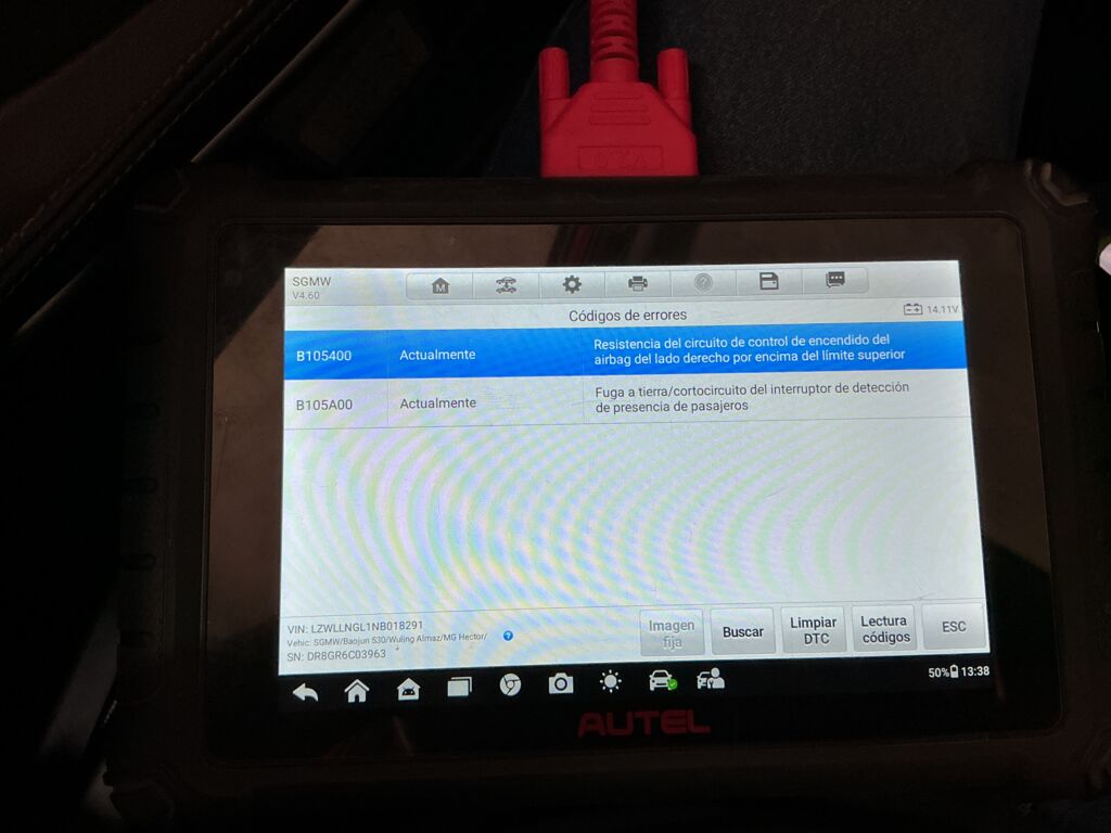 | AirBag | Reparación | Códigos de falla encontrados | ||