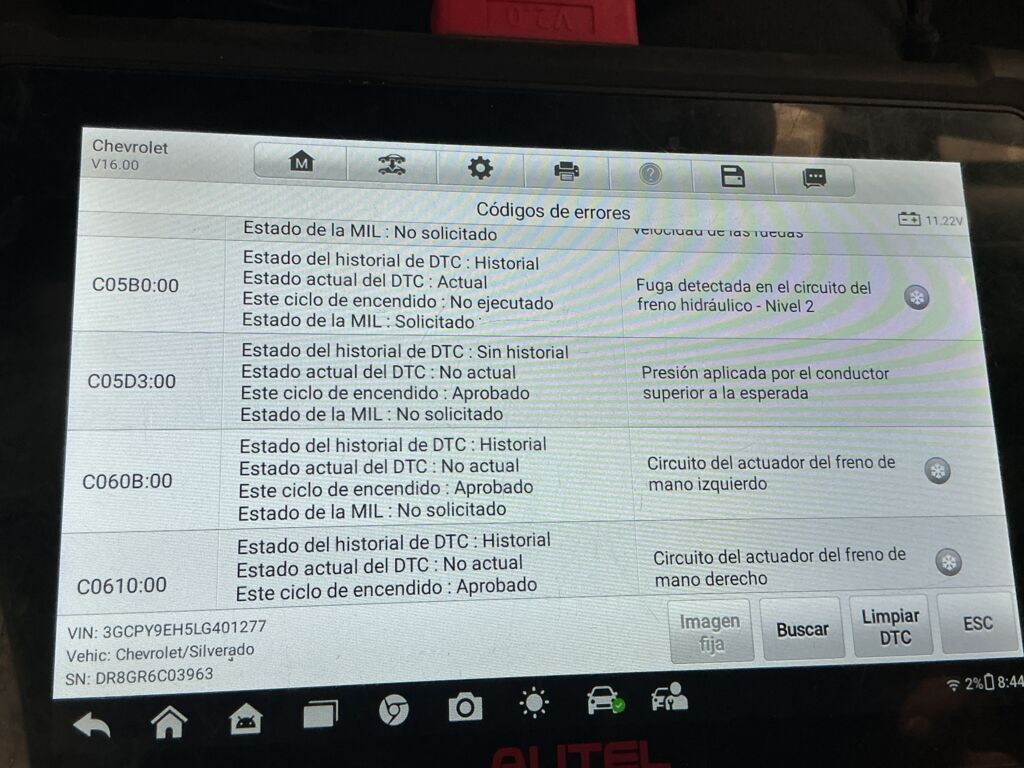 | Frenos | Mantenimiento | Presentaba códigos de avería en ABS y reduce potencia al motor y no frena correctamente (se borraron códigos y no volvieron a aparecer) | ||
