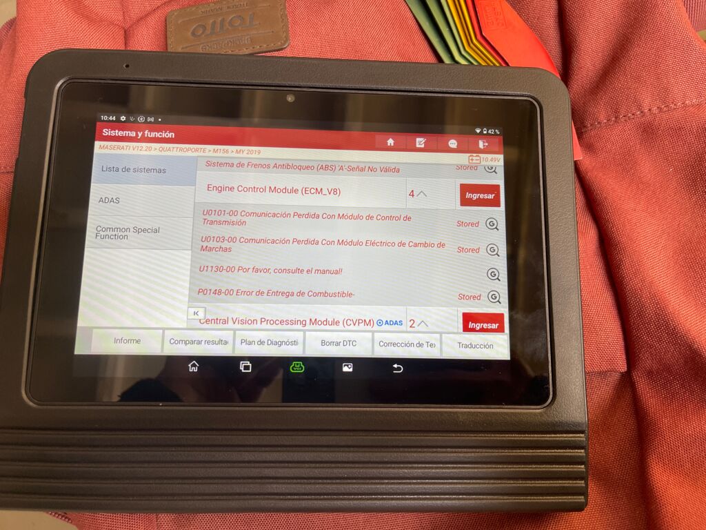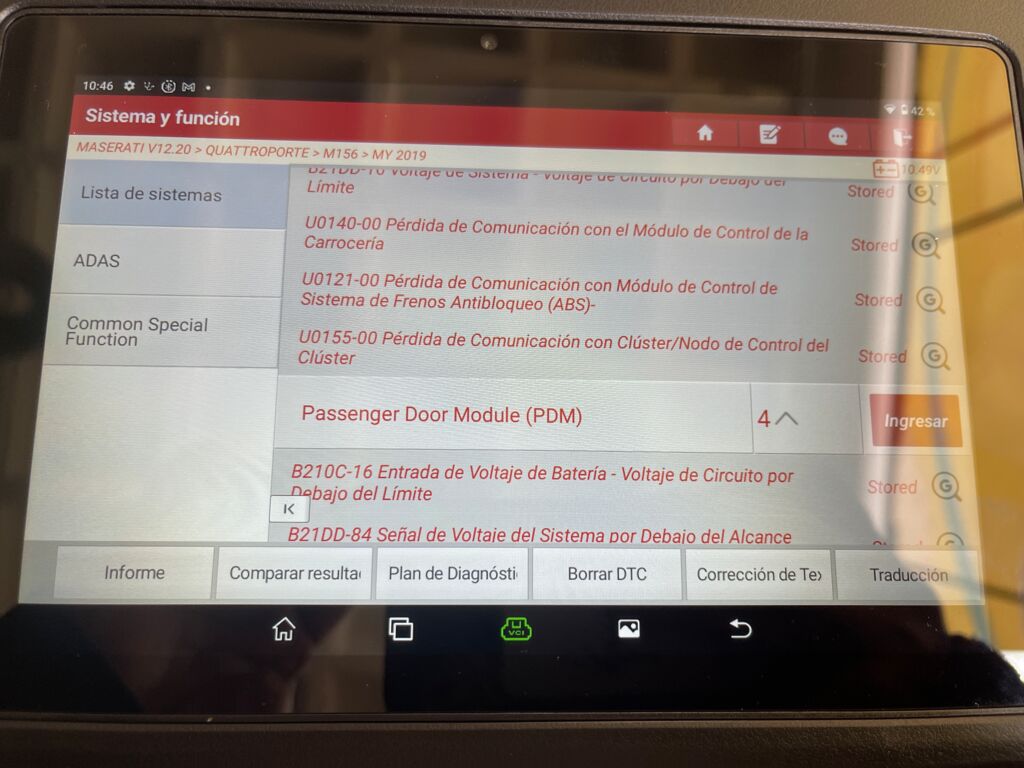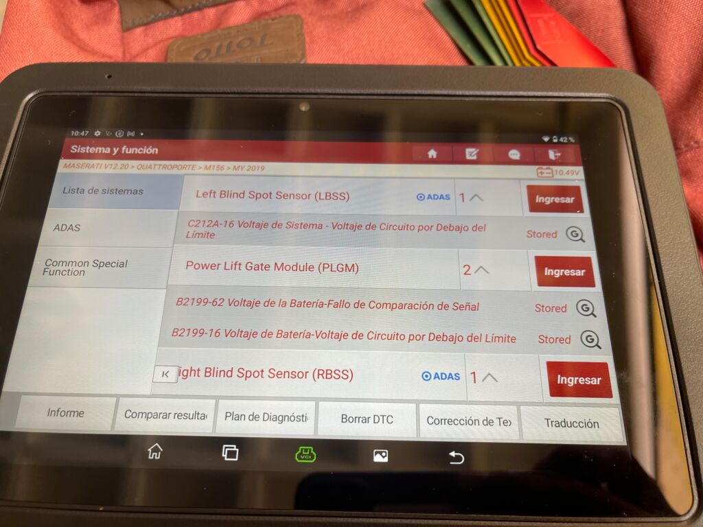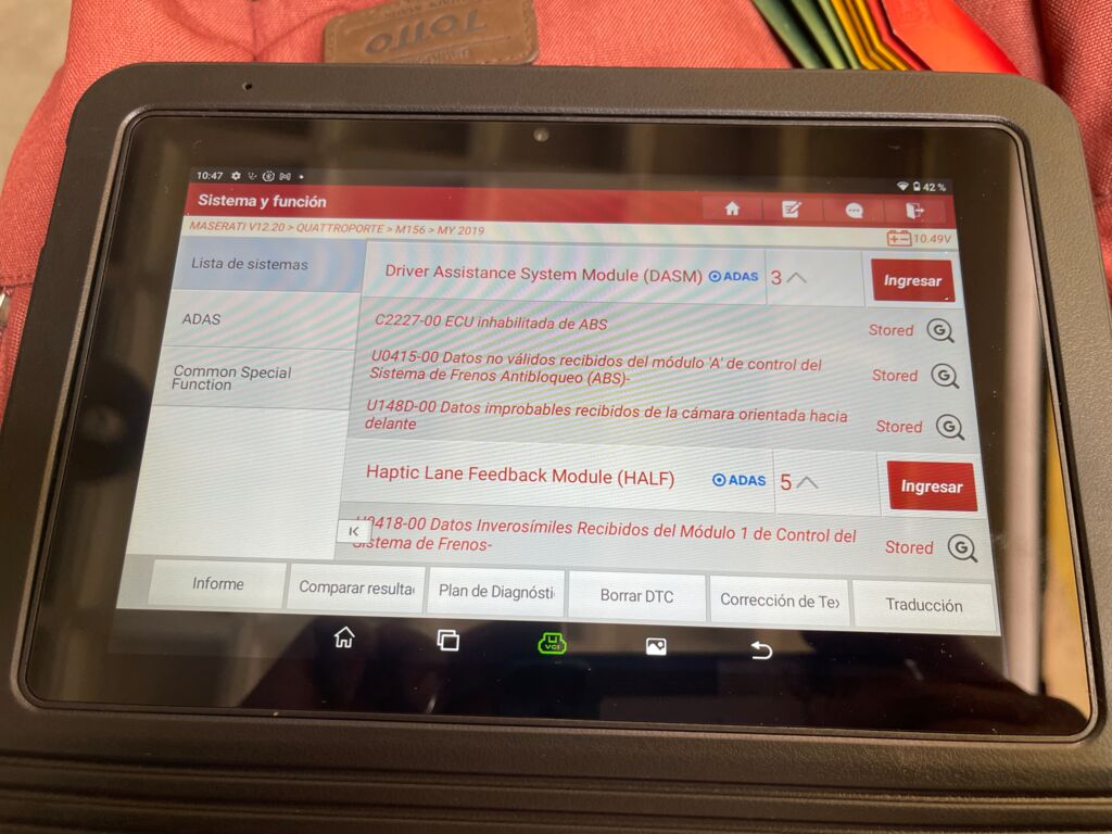 | Frenos | Programación | Unidad presenta fallos de alimentación por corto en bateria, sistema no permite realizar ajustes básicos por daño en batería | ||