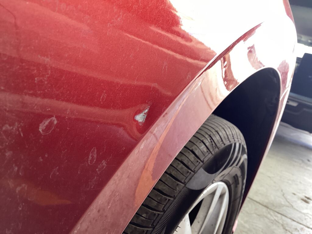 | Salpicadera Delantera | Reparación de Hojalatería y Pintura | Despostilladura con abolladura | ||