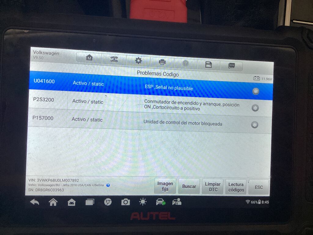 | Motor | Reparación | Unidad de control de motor bloqueada (revisión de códigos) | ||