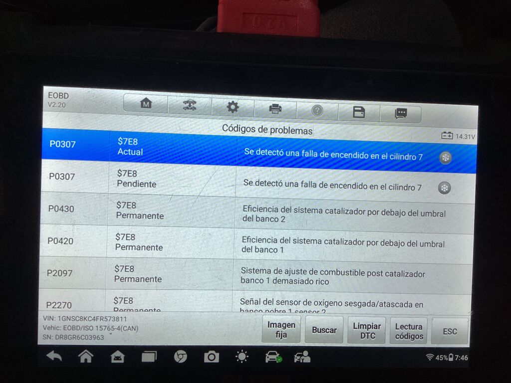 | Motor | Reparación | Se encontraron códigos referentes a fallas de motor, revisión | ||