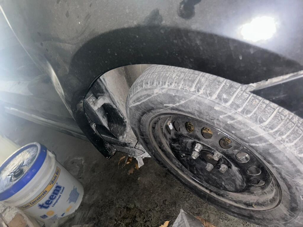 | Salpicadera Delantera | Reparación de Hojalatería y Pintura | Con golpe, descuadrada | ||