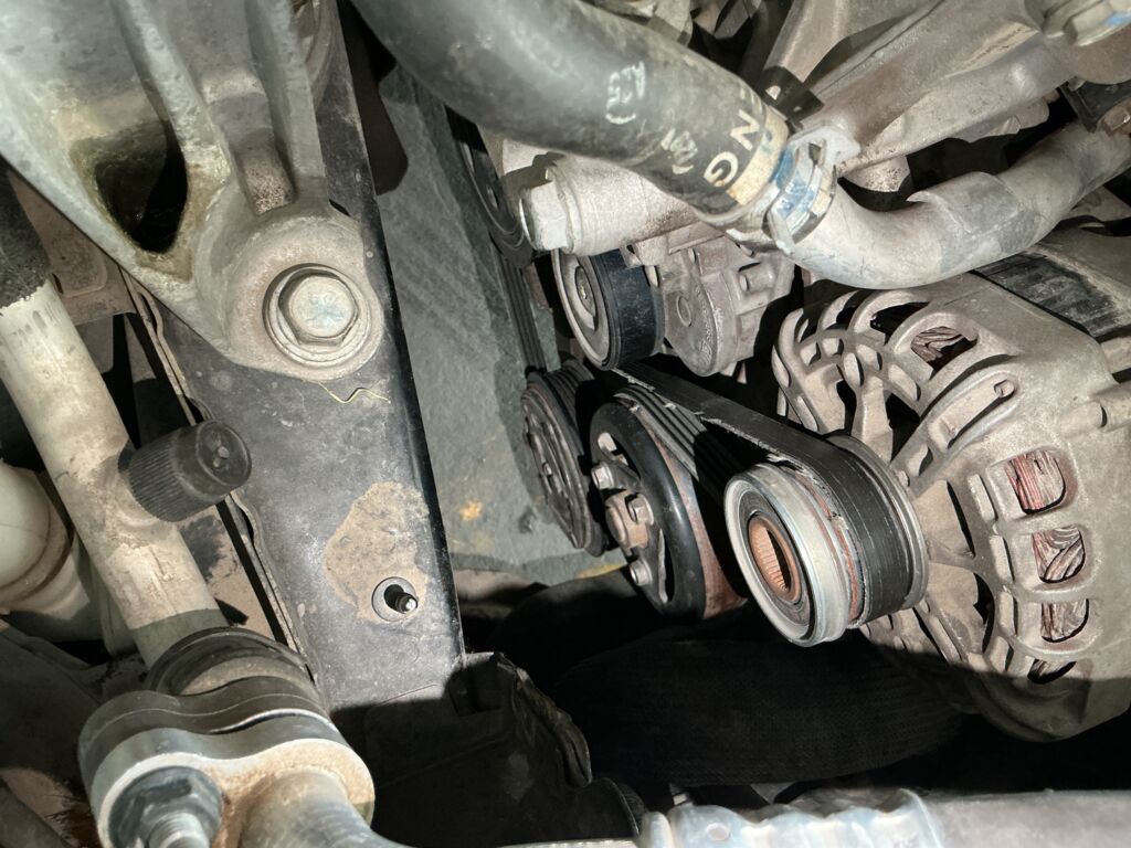 | Poleas y Bandas | Cambio de Pieza | Banda de accesorios despedazada, reemplazar antes de su uso | ||