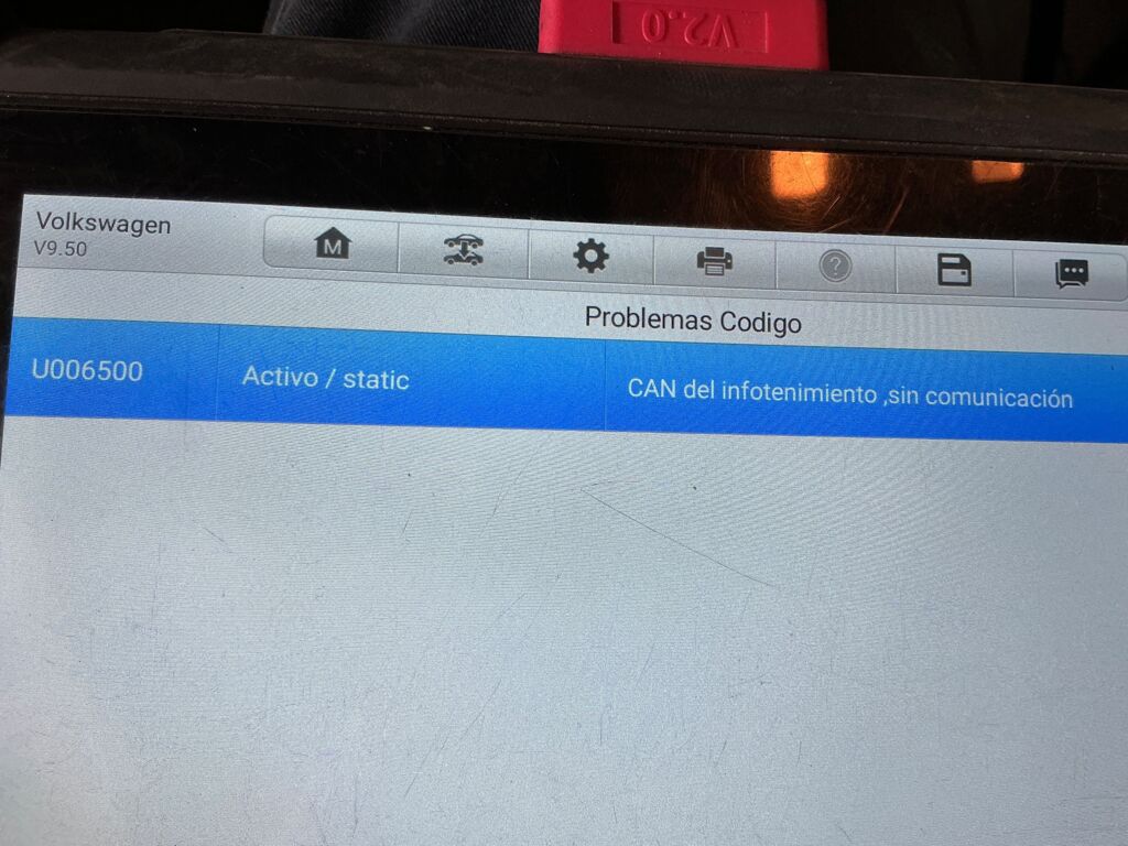 | Carrocería/Complementarios | Programación | Se escaneo y arroja que no hay señal del can de infotenimiento, no prende la pantalla central, no hay forma de corroborar la cámara de reversa y controles de volante | ||