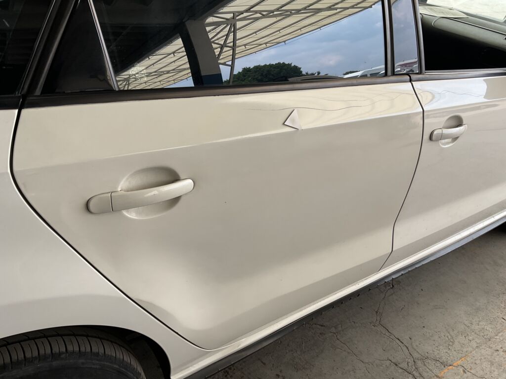 | Puerta Trasera | Reparación de Hojalatería y Pintura | Puerta con mala reparación de hojalateria, presencia de pasta, múltiples detalles y repintada con mal acabado | ||