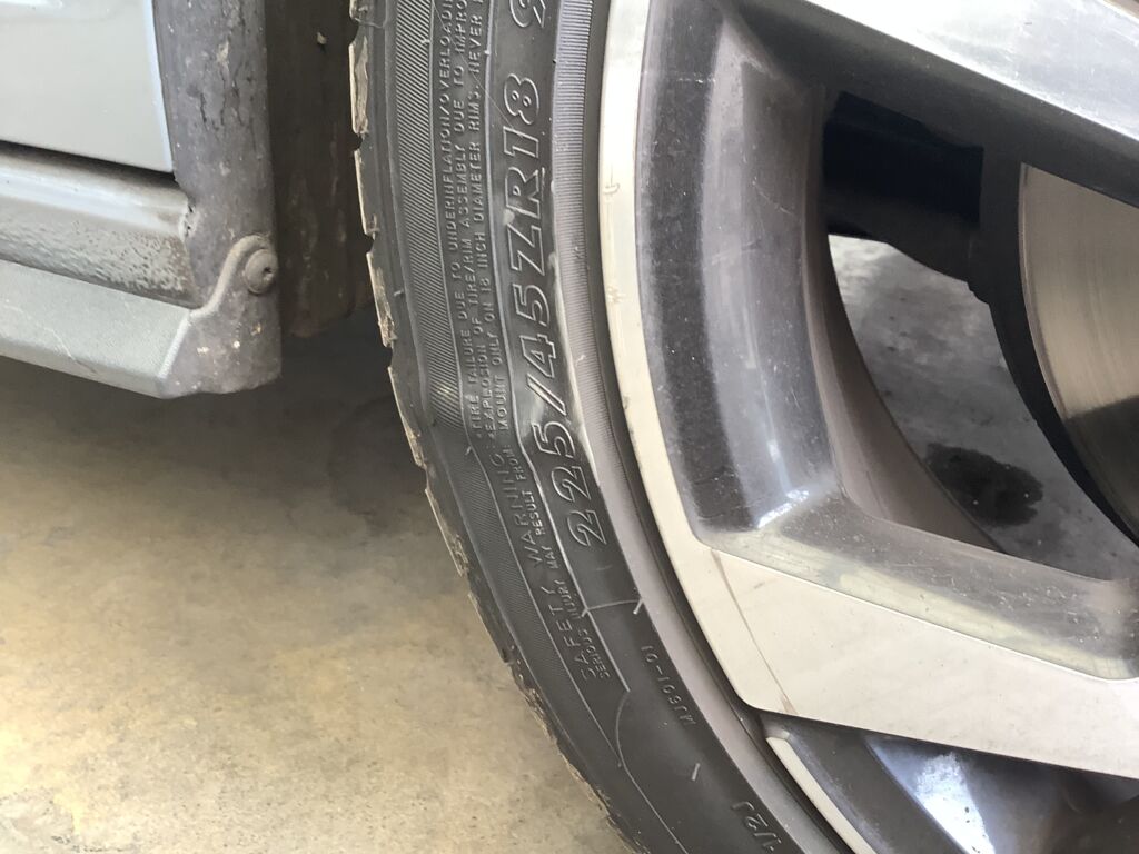 | Llanta Delantera Derecha | 3/4 De Vida Útil | Llanta con daño en la cara | ||